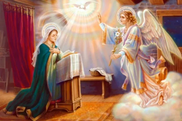 Ангел сказал Ей в ответ: Дух Святый найдет на Тебя, и сила Всевышнего осенит Тебя, посему и рождаемое Святое наречется Сыном Божиим. Вот и Елисавета, родственница Твоя, называемая неплодною, и она зачала сына в старости своей, и ей уже шестой месяц, ибо у Бога не останется бессильным никакое слово. Тогда Мария сказала: се, Раба Господня, да будет Мне по слову твоему. И отошел от Нее Ангел (Лк.1:26—38).