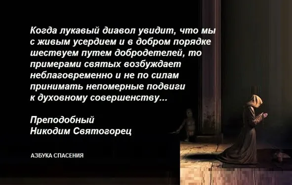 И сколько уже от этой козни вражеской погибло душ, которые, поддавшись рвению неразумной ревности и в своих самоумерщвлениях преступая за меру собственных своих сил, пропали в своих измышлениях подвижнических и сделались посмешищем злых демонов! Чего, конечно, не случилось бы с ними, если б они держались доброго рассуждения и совета и не забывали, что эти самоумертвительные подвиги, хотя похвальны и плодотворны там, где имеется для них достаточная сила телесная и смирение душевное, всегда, однако ж, должны быть управляемы благоразумием и употребляемы лишь как средство к духовному преуспеянию, а не возводимы в достоинство целей, и то умаляемы, то увеличиваемы, то изменяемы, то совсем прекращаемы на время.