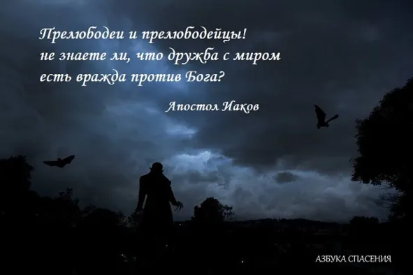 Прелюбодеи и прелюбодейцы! не знаете ли, что дружба с миром есть вражда против Бога? Итак, кто хочет быть другом миру, тот становится врагом Богу. Или вы думаете, что напрасно говорит Писание: до ревности любит дух, живущий в нас? Но тем большую дает благодать, посему и сказано: Бог гордым противится, а смиренным дает благодать.