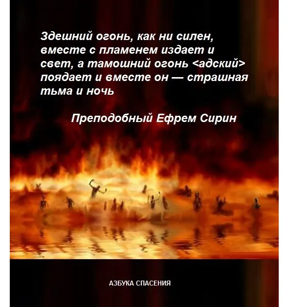 Не думай… что если геенна называется огнем, то она похожа на обыкновенный огонь, этот последний, что захватит, сожжет и перестанет, а тот однажды захваченное постоянно жжет и никогда не перестает.