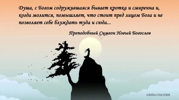 Душа, с Богом содружившаяся, бывает кротка и смиренна и, когда молится, помышляет, что стоит пред лицом Бога и не позволяет себе блуждать туда и сюда… Преподобный Симеон Новый Богослов