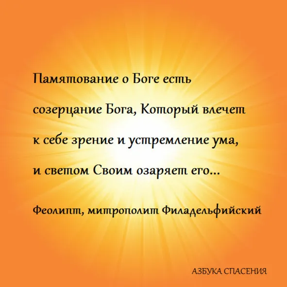 Памятование о Боге есть созерцание Бога, Который влечет к себе зрение и устремление ума, и светом Своим озаряет его. Шествуя мысленным путем, повторяй слова молитвы и беседуй к Господу, непрестанно вопия и не унывая: неотступно молись, подражая бесстудию вдовицы, склонившей на милость неумолимого судию.