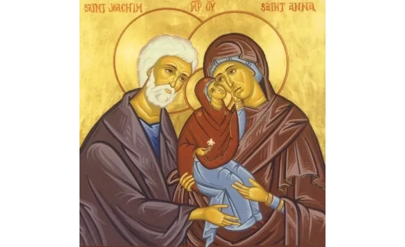 Святой Иоаким жил в городе Назарете Галилейском и имел жену по имени Анну из колена Левиина, из рода Ааронова, дочь священника Матфана, жившего пред царствованием Ирода, сына Антипатра. Сей священник Матфан имел женою Марию, из колена Иудина, из города Вифлеема и трех дочерей: Марию, Совию и Анну. Из них первою вышла замуж Мария в Вифлеем и родила Саломию; потом вышла замуж Совия, также в Вифлеем и родила Елисавету, мать Иоанна Предтечи; третья же, как мы уже сказали, мать Пресвятой Богородицы, отдана была замуж за Иоакима в страну Галилейскую, в город Назарет. Супруги сии, Иоаким и Анна, происходя из знатного рода, поучались в законе Господнем и были праведны пред Богом. Имея богатства вещественные, они не были лишены и богатства духовного. Украшенные всеми добродетелями, они беспорочно соблюдали все заповеди закона Божия. На каждый праздник благочестивые супруги отделяли от своего имущества две части, – одну отдавали на церковные потребности, а другую раздавали нищим.