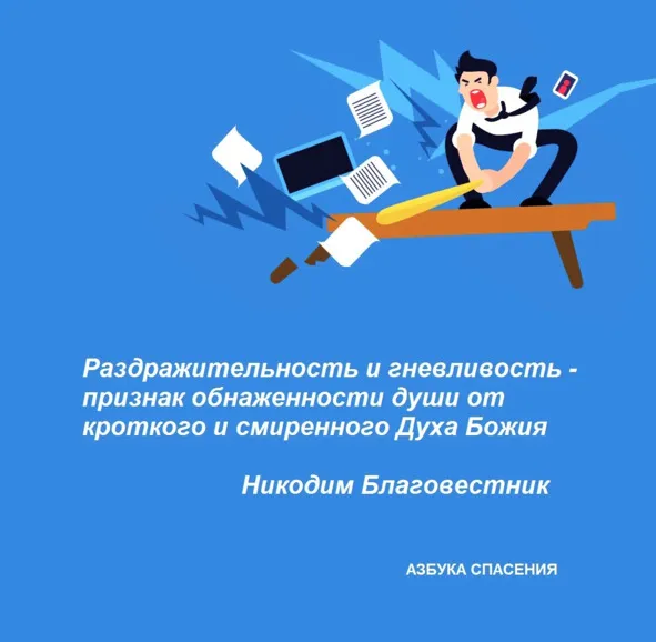 Раздражительность есть удобопреклонное движение нрава и безобразие души. Как при явлении света исчезает тьма, так и от благовония смирения истребляется всякое огорчение и раздражительность. Ничто так не противно кающимся, как смущение от раздражительности, потому что покаяние требует великого смирения, а раздражительность есть знак великого возношения.