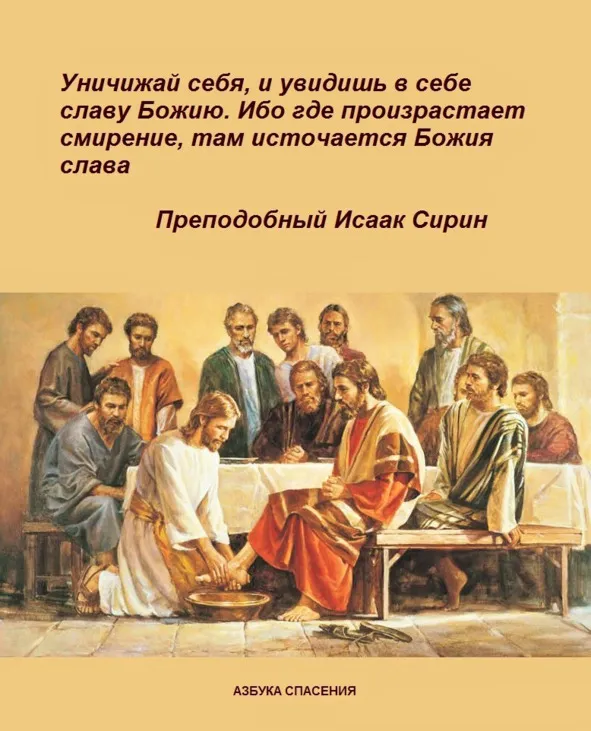 Потом влил воды в умывальницу и начал умывать ноги ученикам и отирать полотенцем, которым был препоясан. Подходит к Симону Петру и тот говорит Ему: Господи! Тебе ли умывать мои ноги? Иисус сказал ему в ответ: что Я делаю, теперь ты не знаешь, а уразумеешь после. Петр говорит Ему: не умоешь ног моих вовек. Иисус отвечал ему: если не умою тебя, не имеешь части со Мною. Симон Петр говорит Ему: Господи! не только ноги мои, но и руки и голову. Иисус говорит ему: омытому нужно только ноги умыть, потому что чист весь и вы чисты, но не все. Ибо знал Он предателя Своего, потому и сказал: не все вы чисты (Ин.13:1—20).