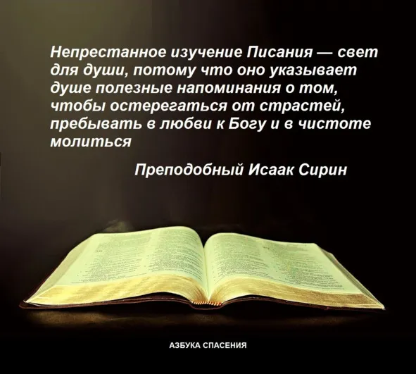 Можно в Писании получить врачевство, соответственное каждому несчастью, постигающему человеческую природу, отринуть всякую скорбь житейскую и не сокрушаться ни от каких обстоятельств… Поэтому… внимательно слушайте чтение Божественного Писания, и не только когда бываете в храме, но и дома берите в руки священные книги и с усердием извлекайте из них пользу для себя.