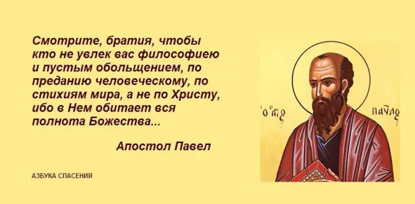 Смотрите, братия, чтобы кто не увлек вас философиею и пустым обольщением, по преданию человеческому, по стихиям мира, а не по Христу, ибо в Нем обитает вся полнота Божества телесно, и вы имеете полноту в Нем, Который есть глава всякого начальства и власти (Кол.2:8—10).