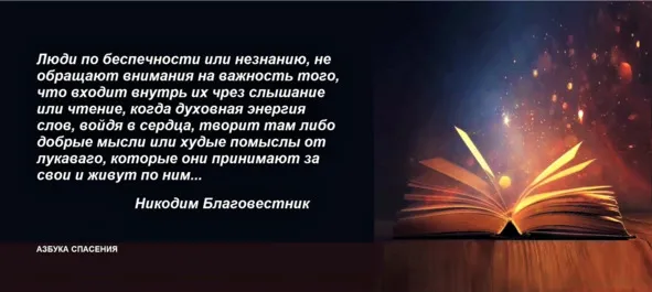 Люди часто по беспечности или по неведению истинности духоносных Словес Божиих, мало обращают внимания на предупреждение Господа важности слышания того, что входит в человека чрез слух, когда духовная сущность (энергия) слов входит в сердце и творит в нем либо добрые мысли, либо противные им, злые. Если в сосуд с чистой водой вливают грязную, то он вся загаживается нечистотами и долго требуется времени, чтобы отделить ее от испорченной, выпарив, например, на огне и опять претворив в чистую, чтобы она могла стать благопотребной для человека. Таким образом управляется весь духовный, разумный мир. Благий и Святый Дух Божий не войдет в неочищенное от пороков и нечистот сердце человеческое. И здесь становятся ясным для понимания Слова Христа: И никто не наливает вино молодое в мехи ветхие, иначе прорвет вино молодое мехи, и само вытечет, и мехи пропадут: но вино молодое надо наливать в мехи новые (Лк.5:37,38).