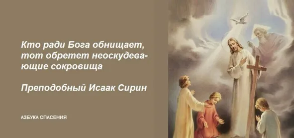 Для нищего духом и весь мир, яко ничто, везде он видит Одного Бога, все оживляющего и всем управляющего, нет у него места без Бога, нет мгновения без Бога – всюду и всякую минуту он с Богом и как бы с Ним Одним. Нищий духом не смеет и не думает постичь непостижимое, раскрывать тайны Божии, высокая мудрствовать, он верит одному слову Господа Жизнодавца, зная, что и каждое слово Его есть истина, дух и живот вечный, и словам Церкви Его, присно наставляемой Духом Святым на всяку истину, верит, как верит дитя отцу или матери своей, не требуя доказательств, полагаясь совершенно на них. Нищий духом считает себя последнейшим и грешнейшим паче всех, вменяет себя попранием всех.