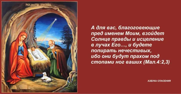 Ибо вот, придет день пылающий как печь, тогда все надменные и поступающие нечестиво будут как солома, и попалит их грядущий день, говорит Господь Саваоф, так что не оставит у них ни корня, ни ветвей. А для вас, благоговеющие пред именем Моим, взойдет Солнце правды и исцеление в лучах Его, и вы выйдете и взыграете как тельцы упитанные, и будете попирать нечестивых, ибо они будут прахом под стопами ног ваших в тот день, который Я соделаю, говорит Господь Саваоф (Мал.4:1—3).