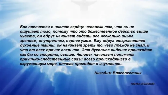 Откровением в Святых Писаниях именуется осенение ума Духом Истины. Такое действо стало необходимым для спасения с Пришествием на землю Бога в образе Сына Человеческого – Иисуса Христа. Зачем это было нужно? – спросит непросвещенный читатель. Затем, чтобы вернуть человека на Небо (Царство Небесное), откуда он ниспал грехопадением, получив по отпадении от Бога тленную, плотскую природу (кожанныя ризы), способную только к размножению себе подобных в краткой земной жизни, кончающейся смертью.
