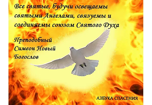 Как мысленные чины небесных Сил освещаются Богом по порядку, так что божественное светолитие проникает из первого чиноначалия во второе, из этого в третье и так во все, так и святые, будучи освещаемы святыми Ангелами, связуемы и соединяемы союзом Святого Духа, делаются равночестными с ними и подобными им. Преподобный Симеон Новый Богослов