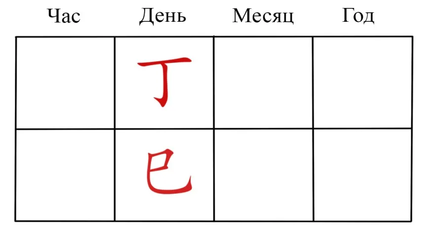 Для 丁 – 壬 как ПЧ, желательно в столпах иметь много 巳, тогда ДД будет крепким и сильным. В столкновении выдвигается 亥 ,у которого внутри 壬, тогда 丁 день получает ПЧ;