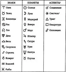 Таблица знаков, планет, аспектов