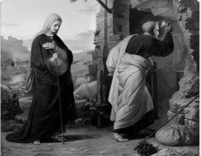 Знаменательно, что им не нашлось места ни в какой гостинице. Этим как будто подчеркивалась неспособность мира принять Христа Спасителя в Его рождении: Лисицы имеют норы, и птицы небесные – гнезда; а Сын Человеческий не имеет, где приклонить голову (Лк. 9, 58); Ибо Он взошел пред Ним, как отпрыск и как росток из сухой земли; нет в Нем ни вида, ни величия (Ис. 53, 2). Он рождается не в богатом дворце, не в роскошной обстановке, а как смиренный человек в пещере, загоне для скота, в которой были ясли, то есть кормушки для животных. Когда Его спеленала Дева Мария, Она положила Его в кормушку для скота.