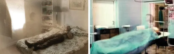 Одно из первых известных фото в СМИ, когда видеокамера зафиксировала выход сознания из тела умирающего больного ночью в больнице.