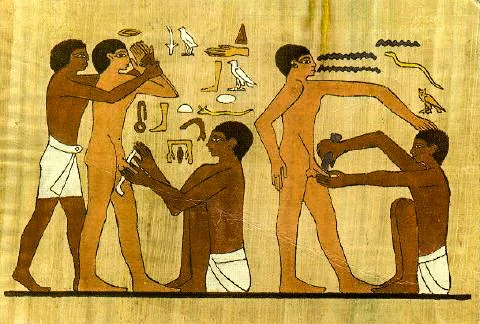 Процесс обрезания в Египте (Гробница Анхмахор в Сахаре. 2350-2000 гг. до н.э.)