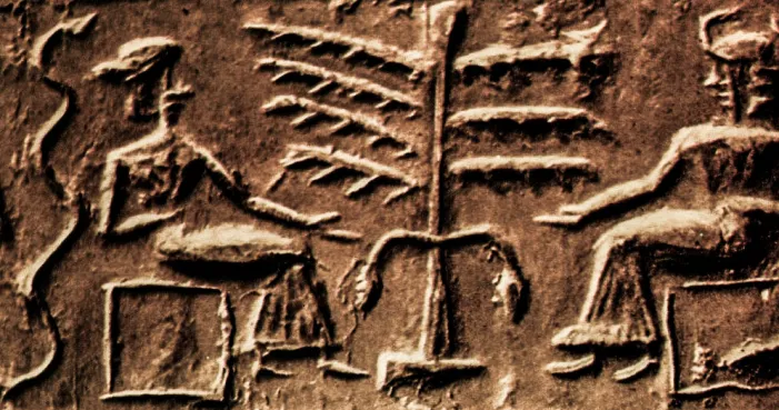 Оттиск, найденный среди древних вавилонских табличек и хранящийся в Британском музее под названием «Печать искушения», определенно имеет отношение к рассказу об Эдемском саде. В центре печати изображено дерево с семью ветвями, с правой стороны от него – мужчина, а с левой – женщина (сорвавшая плод?). И змей, что-то нашептывающий (?) ей.