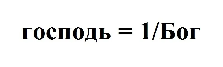 Тут мы совершенно не напрягаясь, наглядно видим – порядок творения господа прямопротивоположен порядку творения Бога. Иными словами – господь это инверсия Бога. А если это так, то мы имеем полное право такую зависимость записать в виде формулы. У нас получается – (господь = 1/Бог.)