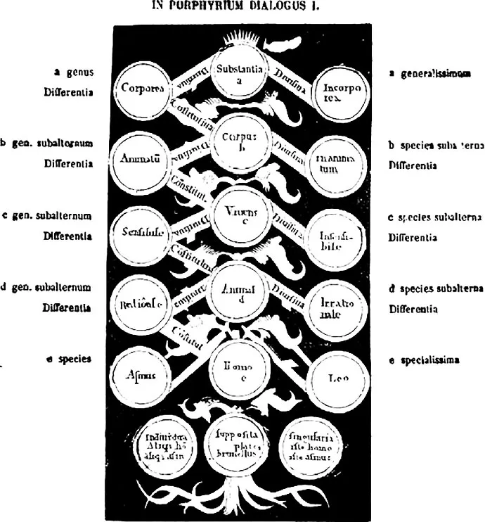 Дерево Порфирия из трактата «Введение» с комментариями Боэция