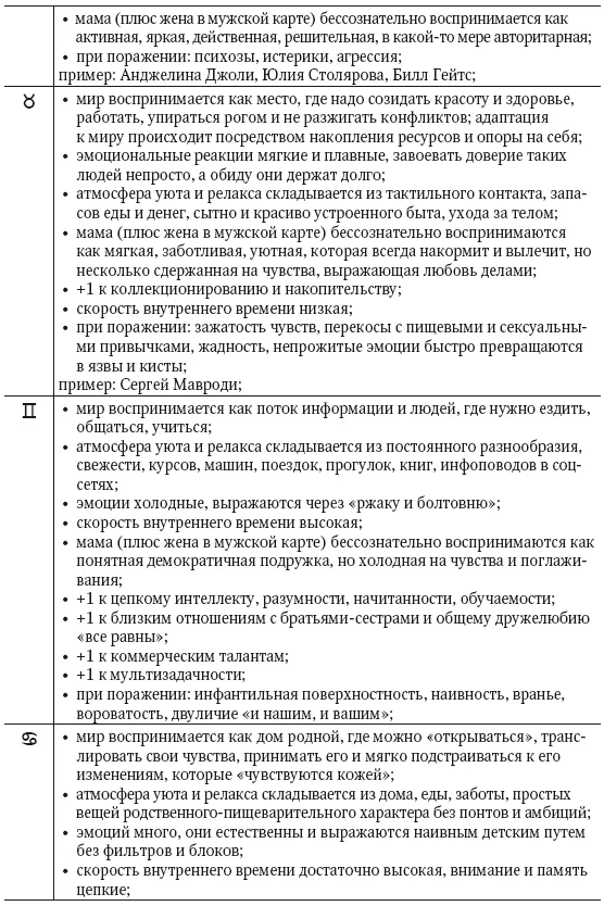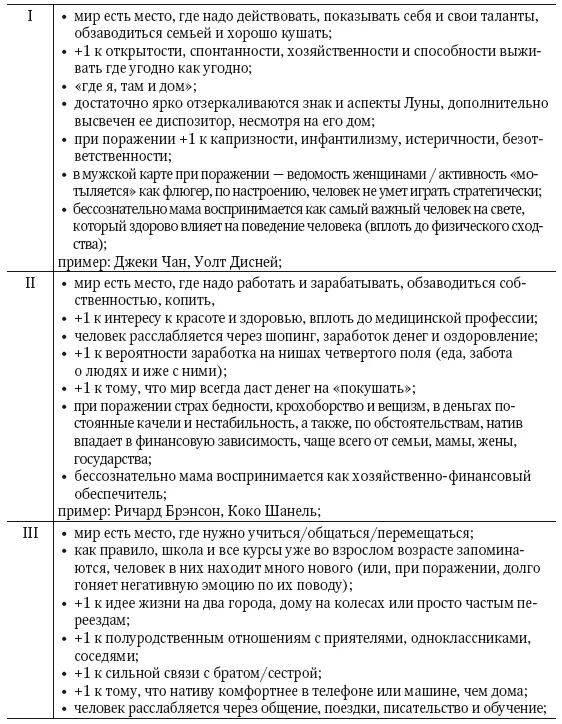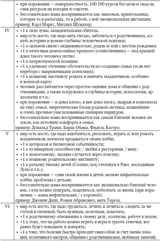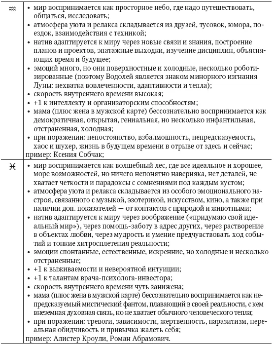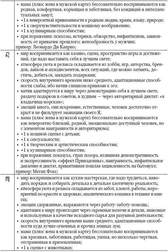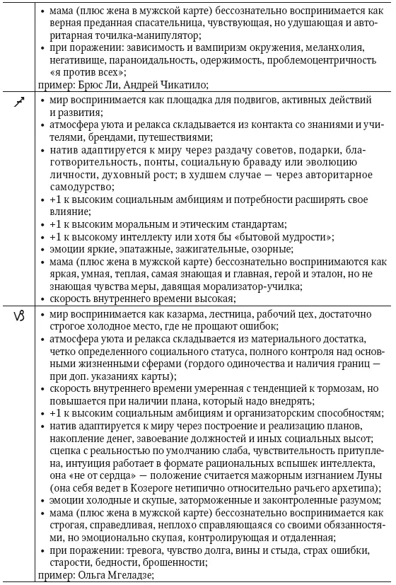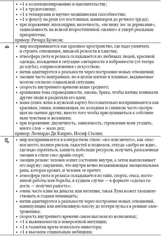 Не стоит впадать в ловушку редукционизма: все указания карты интерпретируются эксклюзивно в сочетаниях. Выше приведены лишь гипотетические ориентиры, которые модифицируются контекстом до неузнаваемости. Помним, что карта рождения по классификации теории систем является нелинейной неаддитивной системой, где элементов так много, их комбинации настолько сложны и роль шанса в процессе комбинаторики настолько велика, что ее невозможно интерпретировать «в лоб» примитивной суммацией компонентов.