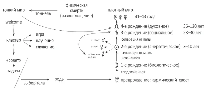 В процессе четырех рождений светила, как качества внутреннего гармоничного непротиворечивого ребенка, превращаются в аналог двух ног. Формируется «походка»: один шаг в органическом порядке Луны (изведанное и ожидаемое), а второй – в новое, требующее импульс усилия (Солнце). Солнце – основная толчковая нога, Луна – страховочная нога, на которой ты отдыхаешь. При этом Сатурн – это общий каркас тела, а узлы – путеводные звезды «откуда» и «куда».