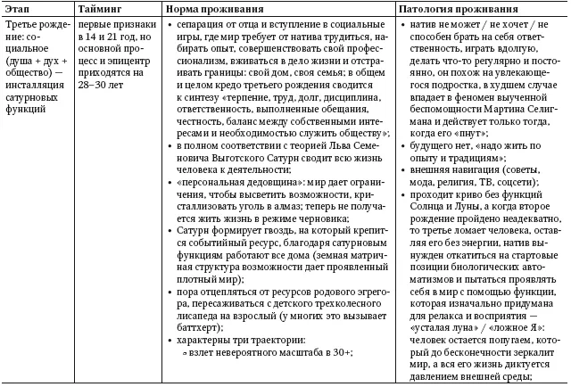 Вера, благодарность, отдача, свет, самодостаточность, идентификация с духовной природой и дар со-Творца, дарованный Солнцем, в свою очередь открывает дорогу к третьему рождению – фиксации Сатурна: устойчивость, доступ к масштабам и взрослым событиям, контакт со временем, доступ к ресурсам, лежащим на кармическом счету, поддержка родового эгрегора.