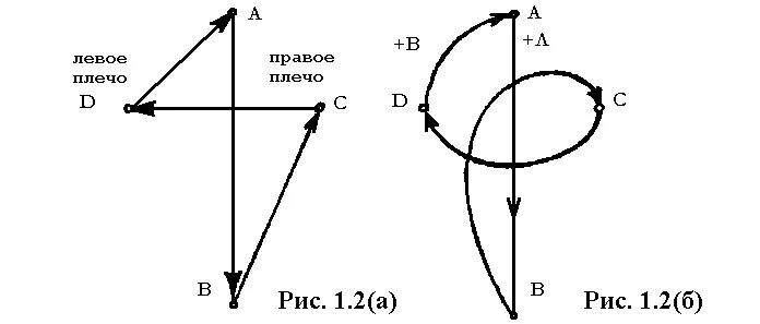 Теперь посмотрите на рисунок 1.2(б). Стрелка, направленная от точки «А» к точке «В» схематически показывает движение энергии «+Л», а круговая (кривая) линия от точки «В» через точки «С» и «Д» к точке «А» отображает движение энергии «+В» (Вера). На этом рисунке показано, что энергия «+В» поднимается по спирали, совершая круговое движение по часовой стрелке вокруг потока энергии «+Л», навстречу ему. Множество потоков энергии «+В» создают «энергетический волчок» вокруг тела человека. Вращаясь, «волчок» отражает внешнюю энергетическую агрессию.