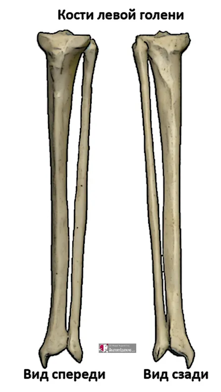 Малоберцовая кость значительно тоньше. Вверху у нее есть головка, на которой находится суставная поверхность для соединения с большеберцовой костью в межберцовом суставе. Это плоский и малоподвижный сустав. Нижний конец утолщен и образует латеральную лодыжку, которая тоже хорошо видна. Внизу кости голени соединяются не суставом, а синдесмозом – непрерывным соединением, движение в котором практически отсутствует. Поскольку концы большой бедренной кости сильно расширены, кости голени на большем своем протяжении находятся на расстоянии друг от друга, образуя межберцовое пространство. В этом пространстве находится межкостная перегородка.