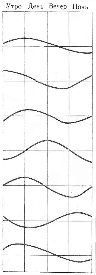 Исключением из правила времени максимума является также ваготоник. Он имеет, в определенной степени, измененные жизненные ритмы. Утром ему требуется очень много времени, чтобы прийти в себя. Только после 10 час его можно считать «нормальным» человеком. Время максимума ваготоника сдвигается на 1.2 часа позднее.