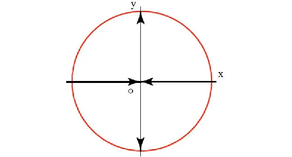 Так, источником самодвижения любого природного процесса является стремление противоположностей к положению равновесия, к тождеству между ними, что, однако, не вызывает прекращения процесса, а порождает из тождества новую пару противоположностей. Это определяет обмен веществ в природе Рис. 7. Назвав первую пару противоположностей (ось Х) «сходящейся» парой, а вторую (ось У) – «расходящейся», как это делал Гераклит, покажем с помощью данных понятий различие между природными и социальными процессами.