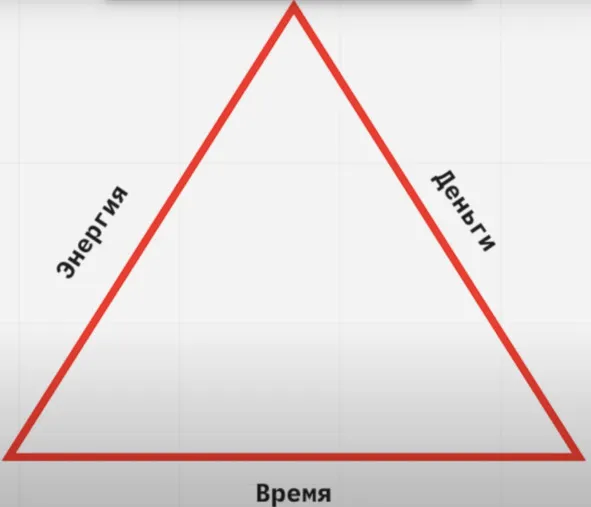 Мы можем построить треугольник деньги – время – энергия. Как в течение жизни распределяются эти 3 ресурса у человека?
