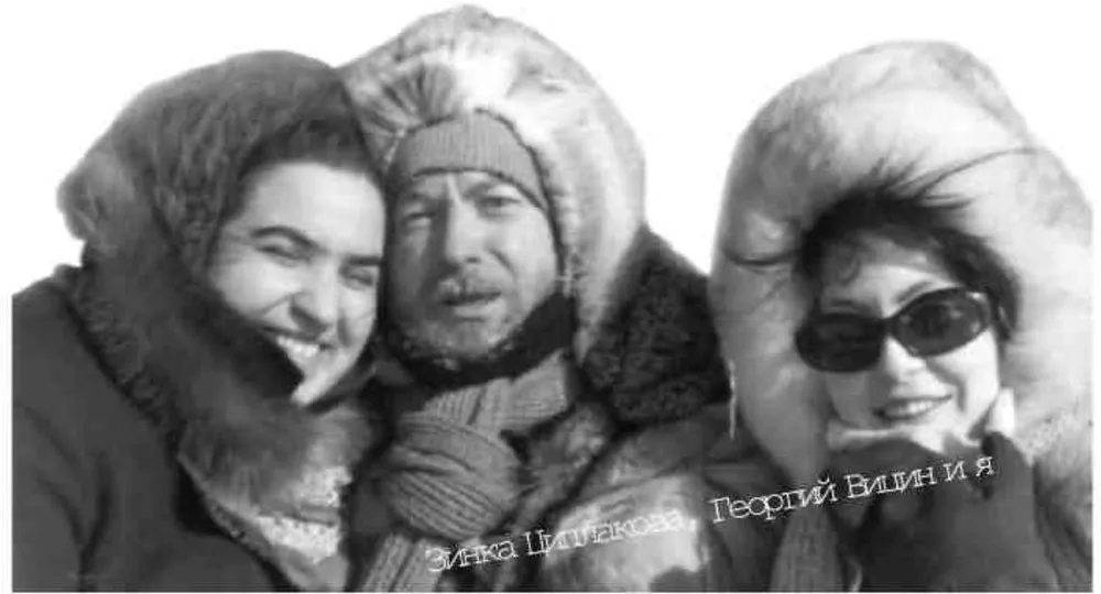 В эти последние дни марта нам неожиданно объявили выходной из-за неготовности декорации, и мы накануне вечером, естественно, развлекались кто как мог. Легли спать все поздно, а некоторые, возможно, и вовсе не ложились, когда ещё затемно к нам ворвалась Надька, а потом вскоре директор и режиссёры, и суетливо забегали по нашему коттеджу: «Вставайте! Вставайте! Едем в Сосновую поляну на съёмки!» Сосновая поляна – это филиал «Ленфильма», расположенный примерно на таком же расстоянии от Ленинграда, как Зеленогорск, только в противоположной стороне. Там для нас строили ту самую декорацию. Спросонья я ничего не могла сообразить, ни что снимаем, ни что брать с собой. Я схватила большой платок, размером с плед и накидала туда все костюмы, что оставались в ящиках. Узел «светики», наша основная рабочая сила, стащили вниз в автобус, куда следом буквально впихнули нас, не дав времени ни умыться, ни поесть. Уже в автобусе по дороге выясняем, почему такая спешка и неразбериха. Оказалось, что Надька где-то болталась весь вечер, и только ночью до неё дозвонился замдиректора из Ленинграда и сообщил, что «Ленфильм» предоставляет для съёмок только один день и там уже всё готово – вызваны актёры и т. д. Удалось также узнать, что мы снимаем там якутов с собачьей упряжкой, которые нашли Ильина (Дворжецкого) и, кажется, их чум.