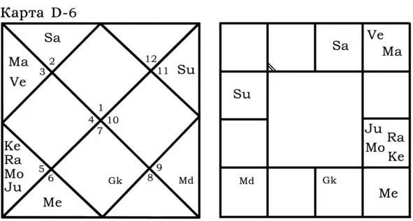 Часто такое положение Асцендента и Лагнеши говорит о том, что вся жизнь человека омрачена неким духовным или физическим заболеванием. Давайте рассмотрим пример такого гороскопа.