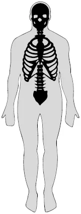 Рис. 1. Осевой скелет. Состоит из 80 костей и включает череп, позвонки, ребра и грудину