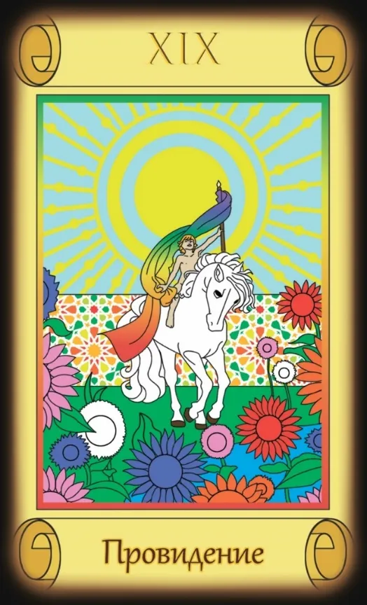 В карте 19 аркана мы видим чудесный садик, который огорожен стеной, и Солнце над ним. Человек, который совпал с намерением системы, он начинает чувствовать, куда двигается мир. Он не опирается на какие-то написанные кем-то когда-то правила. В исламе есть радикальные исламисты, фанатики, которые всех пытаются заставить жить по правилам средневековья. А есть те, кто говорит, что то, что было – оно ушло, это уже не важно, и они строят новый мир.