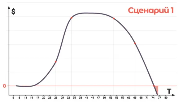 Посмотрите на график: Ваше финансовое будущее уже заранее в такой модели известно. Это модель поведения описывает модель жизни нищих людей – это модель банкротства.