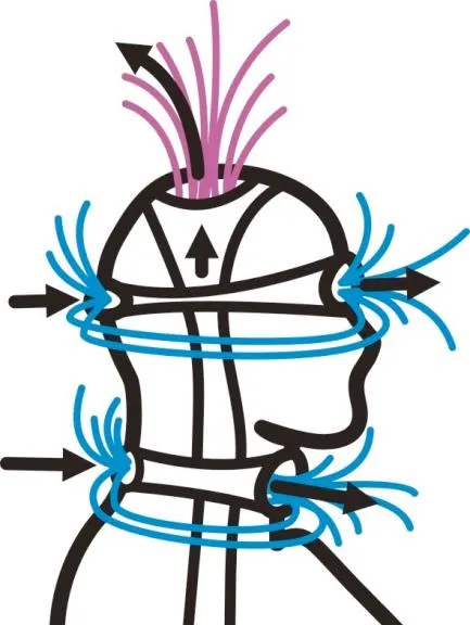 На рисунках вы видите, что чакра (вид сбоку) представлена в виде воронки. Спереди она является отдающей, а сзади – поглощающей энергию1. Наружу мы транслируем то, что у нас внутри – свои стремления, желания, эмоции, формируем поступки, а поглощаем то, что прошло через взаимодействие с окружающим миром – это наша энергия + энергия окружающего мира.