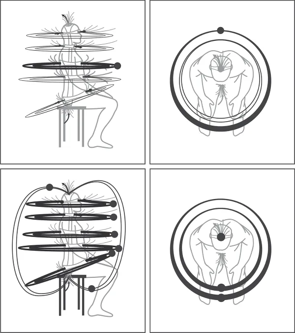 На следующем этапе вам необходимо вращать две окружности (цвета по выбору). И так далее наращивать свои возможности, пока вы не будете вращать все семь окружностей (которые в конце упражнения нужно поглотить).