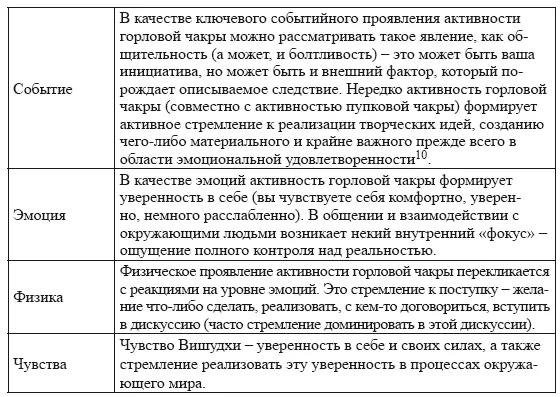Вишудха – чакра позиционной реализации (социального статуса и умения им распоряжаться), чакра общения – взаимодействия с окружающим миром и людьми. Реже акцент горловой чакры рассматривается в качестве формы реализации творческого начала человека; в то время как пупковая чакра реализует материальный аспект творческих идей, идейный ресурс для нее поставляет горловая чакра.
