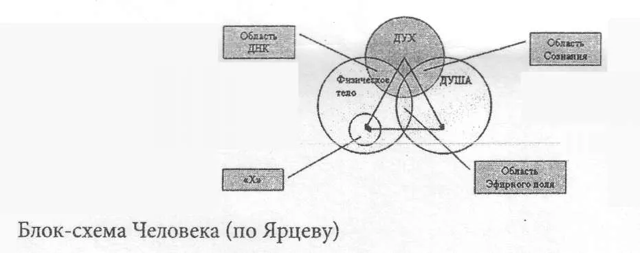 Энергоинформационное строение человека можно отобразить, условной блок-схемой, предложенной российским учёным В.В. Ярцевым (см. рис. 2).