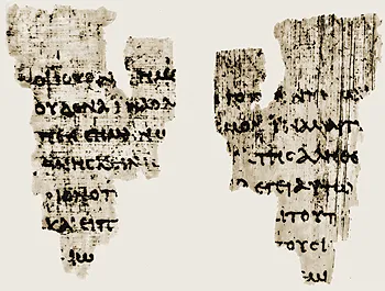 Рис. 1. Папирус P 52. Фрагменты текста Евангелия от Иоанна. Ок. 125 г. (Б-ка ун-та в Манчестере) // sedmitza.ru/text/413768.html