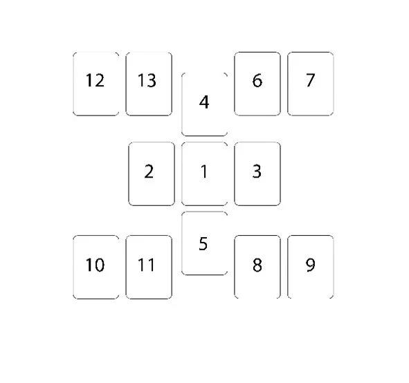 Для этого расклада сперва следует вынуть пять карт в порядке, указанном на рисунке 2. Где понимать карты следует так: