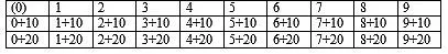 Счет начинается с 1 и, когда первый разряд заполнен до 10, счет продолжается снова с 1 с учетом ранее заполненного десятичного интервала (использованы все цифры алфавита десятичной системы счисления). Во втором разряде счет идет десятками до величины 100 (10 десятков) с нумерацией десятков цифрами алфавита (10, 20, 30, …).