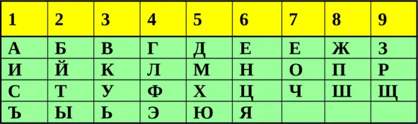 Как видим из таблицы, слову «ЦЕЛЬ» соответствует значение «1».