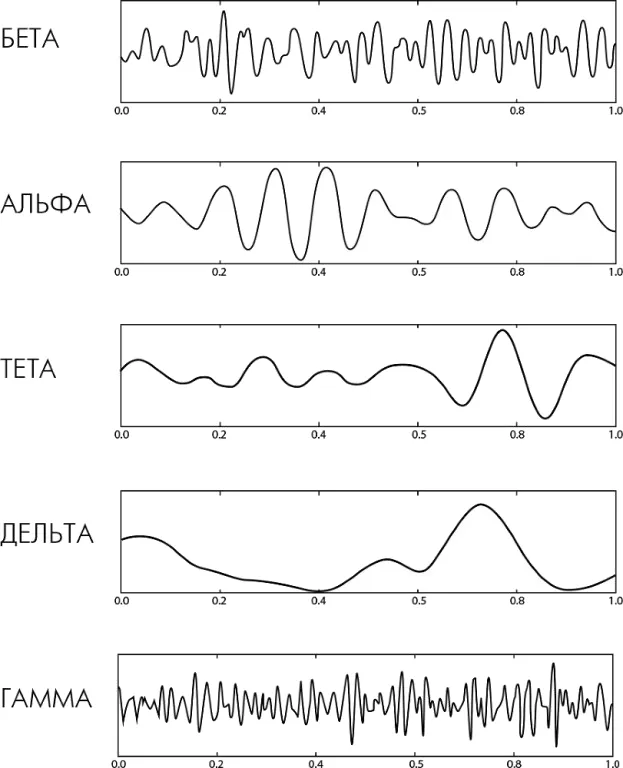 Бета-волны фиксируются при повседневном состоянии сознания, альфа-волны доминируют при погружении в творческую активность, тета-волны соответствуют состоянию на грани сна и бодрствования, дельта-волны излучаются мозгом в период глубокого сна.