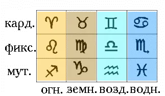 Овен, Лев и Стрелец – огненные знаки, в то время как Близнецы, Весы и Водолей – воздушные знаки. Телец, Дева и Козерог – земные знаки, в то время как Рак, Скорпион и Рыбы – водные знаки. Мы осветим в деталях эти элементы, а также более пригодную классификационную систему в следующих разделах.