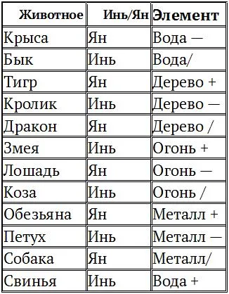 Обратите внимание на то, что возле каждого знака в таблице стоят плюсы, минусы и косые – /. Что это означает? Всего лишь то, что эти элементы не равны друг другу. Есть разница между металлами петушиным и обезьяньим, между Водой от Свиньи и Водой Крысиной. В чем?