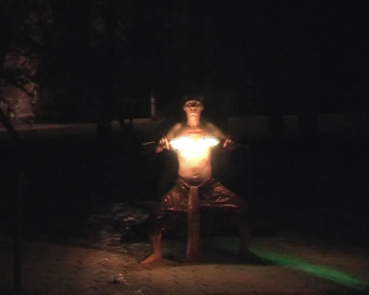 Через несколько дней к нам приехали друзья из областного центра – Юля (она подготовила египетский танец и поставила движения И.П. с факелами) и ее муж Алексей. Мы приготовили программу, затратив немалую тогда для нас сумму денег на изготовление факелов, оплату услуг оператора и пошив сценических костюмов. После генеральной репетиции вечером мы отправились на съемку. До последнего момента я не верила, что И.П. сделает то, что обещал. А именно: обожжет себя огнем двух факелов и пройдет по горящим углям. Правда, он продемонстрировал нам во дворе, как загорается жидкость, выпущенная им изо рта в сторону факела (так называемое дыхание огнем). Я удивилась, но решила, что это – не самое сложное. Мне казалось, что в последний момент И.П. что-нибудь «придумает» и съемка сорвется, как это было с ремонтом у нас дома. Он страшно нервничал, кричал на Юлю, которая исправляла его движения, и давала сценические советы. Последние два-три дня он стал очень нервным и постоянно твердил, что эгрегор огня не дает ему покоя. Я не знала, как себя вести с ним и как относиться к тому, что он говорит.