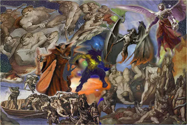 Отсюда и следует понимание «Нуля» пространственной системы координат – как условной «точки» коллапса Вселенных. Вместе с этим существует еще более высокое по своему уровню демоническое образование – многомерный Шог, материальность которого создана великими демонами. Его светило – Дигма невыразимого цвета, пылающее в зените и пульсирующее в виде фиолетовой арки, перекинутой от края и до края. Это – антикосмос Вселенной – средоточие всех сил Люцифера. Его первое лицо Гистург или Великий Мучитель – последняя глубина демонического я, носителя высшей воли, власти и желания. Люцифер безмерно жуток в своем облике – каким видели его духовные очи немногих людей, проникших в темные высоты Дигма – мира Его обитания. Как бы возлежащий на бушующем лиловом океане, с черными крыльями, раскинутыми от горизонта до горизонта, Он поднимает свое темно – серое лицо в зенит, где полыхают инфралиловые зарева, раскачиваются и гаснут протуберанцы. Временами арка как бы прогибается во внутрь и силы Люцифера льются в Шог. Тогда Он, обратно приемля их в себя, воздевает свои крылья в черное небо. И горе тому, на кого Он опустит свой взор, и кто встретит его открытыми очами. Из всех среди людей, нисходивших в Дигм, только один Торквемада нашел в себе силы вспомнить в этот миг Божье Имя. Остальные монады стали рабами дьявола на неисчислимые века [31, с. 47, 76… 79].